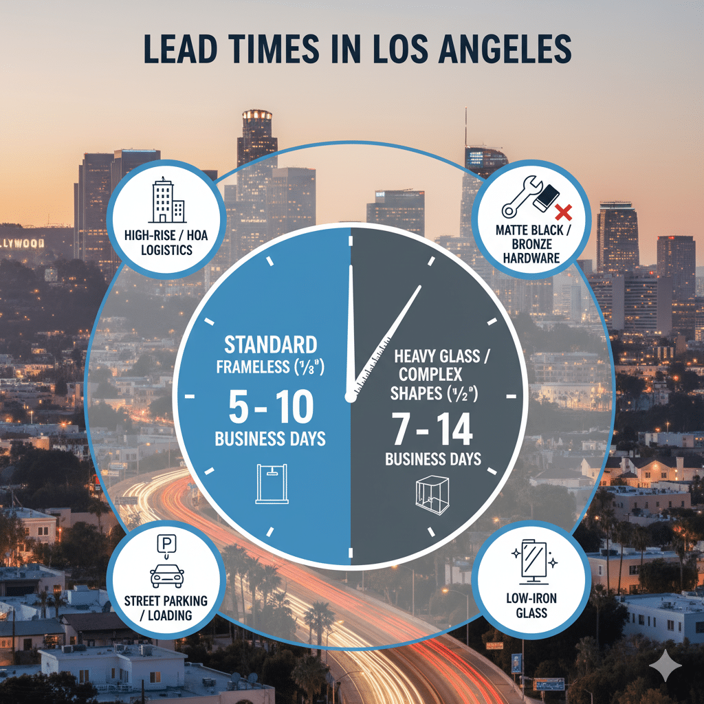 Short version: most frameless jobs in L.A. go fast once we’ve templated, but a few choices and building quirks can stretch the timeline.